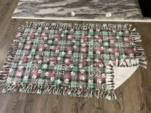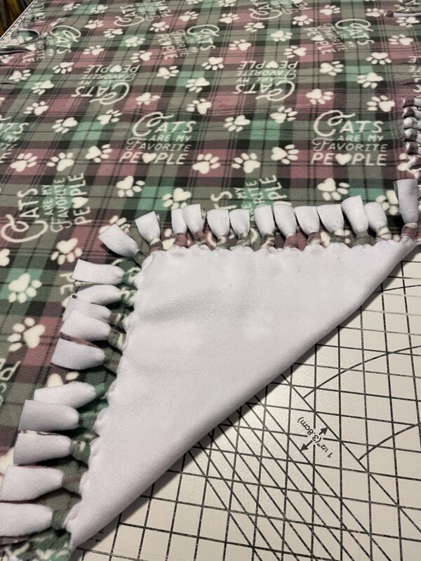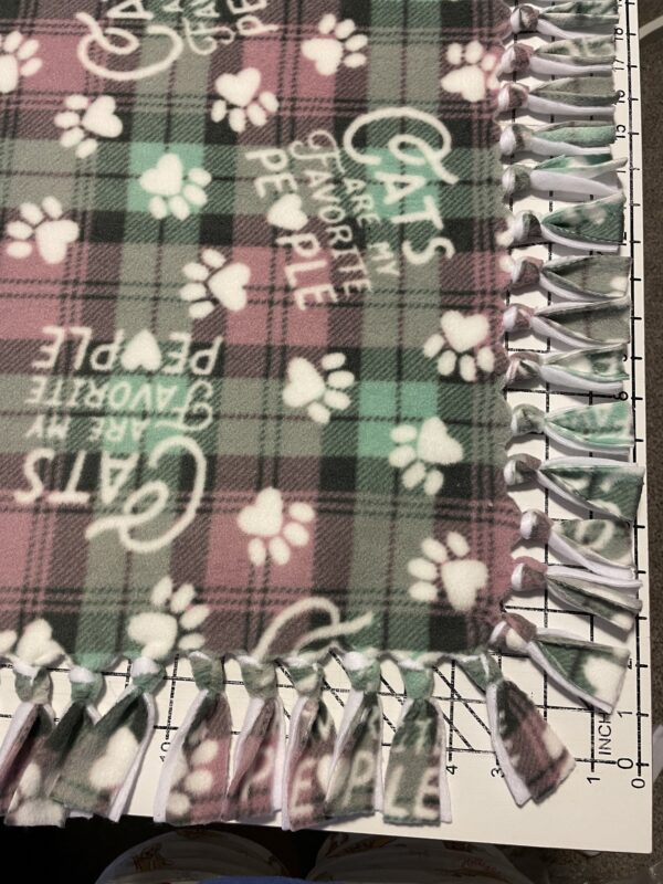 Cats Are My Favorite People Handmade Double Thick Fleece Tie Blanket is made with Cats Are My Favorite People fleece fabric on the front and high quality white fleece fabric on the back. This is the perfect gift for your kitty. It measures 54″ long by 52″ wide. (change this portion for each size)