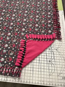 Pink And Gray Paws & Hearts Handmade Double Thick Fleece Tie Blanket