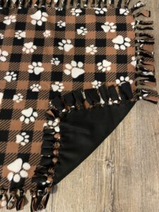Dog Paw Buffalo Print Handmade Double Thick Fleece Tie Blanket - Brown and Black